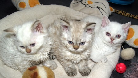Am 26.03.25 hat unsere süße Baffy ihre 3 curlys gesund und munter auf die Welt gebracht. Ein Girly und 2 Boys.Ein ruhiger ausgeglichener Wurf.Baffy ist ein ganz tolle Mama und kümmert sich um ihre Löckchenbande super.Die Mäuslein haben ihre Äuglein geöffnet .Nicht mehr lange dann wollen sie ihr Kittenzimmer erobern.Total trollig.Mit Futtern haben sie jetzt angefangen,noch tapsig aber süß.Sie entwickeln sich super. Haben ganz tapfer ihre 1.Impfung verkraftet.