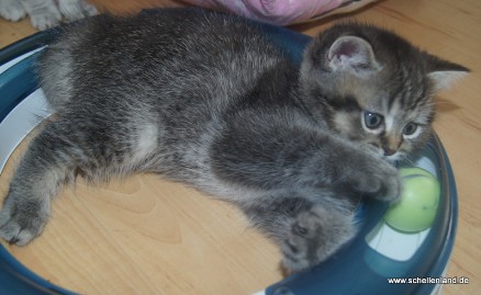 In den nächsten Tagen wird das erste Futter probiert und Katzentoilette, bin gespannt wie schnell es mit allem klappt. Die Kleinen laufen und springen fleißig herum. Ganz niedlich! Sogar Mama, Zarewna will ihnen eine Maus fangen. Siehe Foto. Sie fressen und gehen auf die Katzentoilette, spielen und klettern. Es macht große Freude ihnen zu zuschauen.
