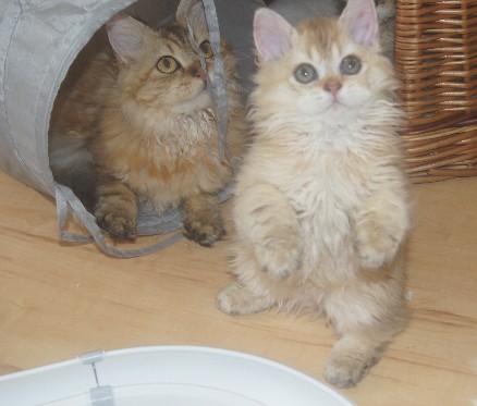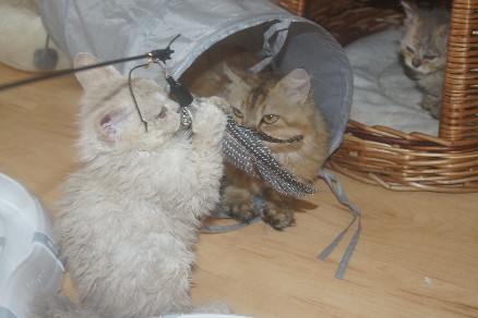 Am 3.07. hat unsere Taika ihre Babys gesund und munter auf die Welt gebracht. Es sind 3 süße longhaircurlys. In unterschiedlichen Farben, was sehr schön ist. Jetzt trinken alle fleißig bei der Mama. Sie kümmert sich auch rührend um sie und trotz das es ihr 1.Wurf ist. Unsere Kleinsten haben nun ihre Äuglein geöffnet und entwickeln sich super. Taika, ihre Kitten wachsen und gedeihen. Sie beginnen schon mit der 1.Mahlzeit Babycat und Babytrockenfutter.Total süß. Hier ist Moya mit bei den Kitten und kümmert sich gemeinsam mit Taika um die Kleinen. Unsere Curlymädchen wachsen und gedeihen. Es ist wunderschön alle in ihrer Entwicklung zubegleiten.