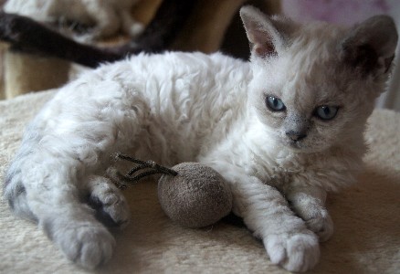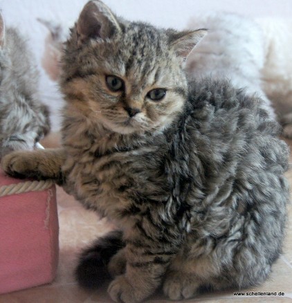 Minou vom Schellenland hat am 22.08.2013 ihre Lockenbabys ohne Probleme auf die Welt gebracht. Unsere süße Katermannschaft hat nur spielen, schlafen, kämpfen und schmußen im Programm. Es ist herrlich den Kleinen zu zuschauen wie toll sie sich entwickeln. Ihre 1. Impfung und 2. Impfung haben sie super vertragen! Der gesamte Wurf ist nur schnurrig, menschenbezogen und sehr neugierig wie die Elterntiere. Die Kleinen sind kompakt und kräftig! Nun langsam ziehen sie in die weite Welt.