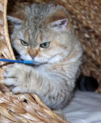 Valentino ist ein Knuddelbär, er liegt gerne auf dem Rücken und läßt sich den Bauch kraulen und schnurrt ohne ende. Er ist aufgeweckt und der Neugierigste!!
